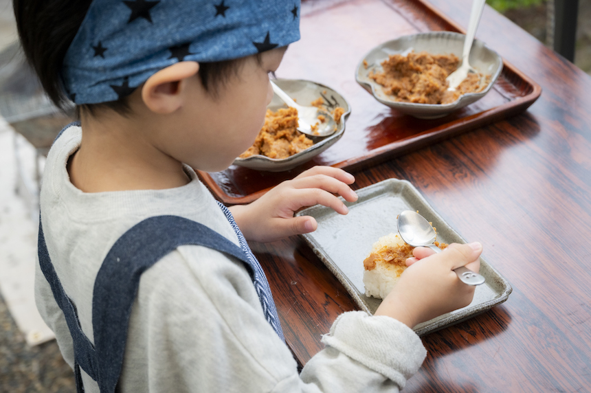 阿部さん自家製の麹味噌はすごく美味しかった!子供たちも興味津々