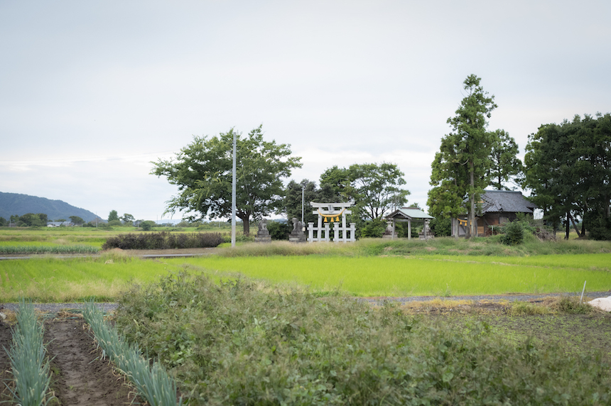 この地の氏神様が見守るなかで昔から稲作は続いてきた