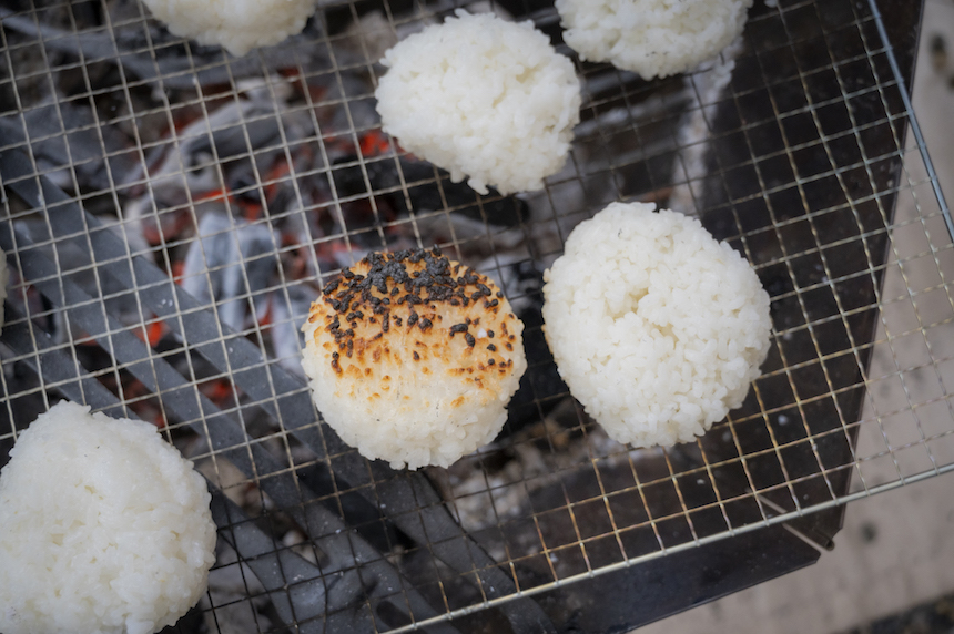 3.握り飯を焼く