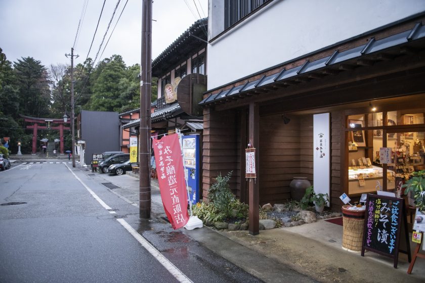 越後みそ西の弥彦の店舗は弥彦神社・一ノ鳥居前の門前通り沿いにあるが、この場所は「神社ができる頃から必要とされてきた、神社との関わりが深い方々の土地だと聞いています」と杤堀さんが話すように、エリア外の事業者が商売をすることは異例中の異例だ。