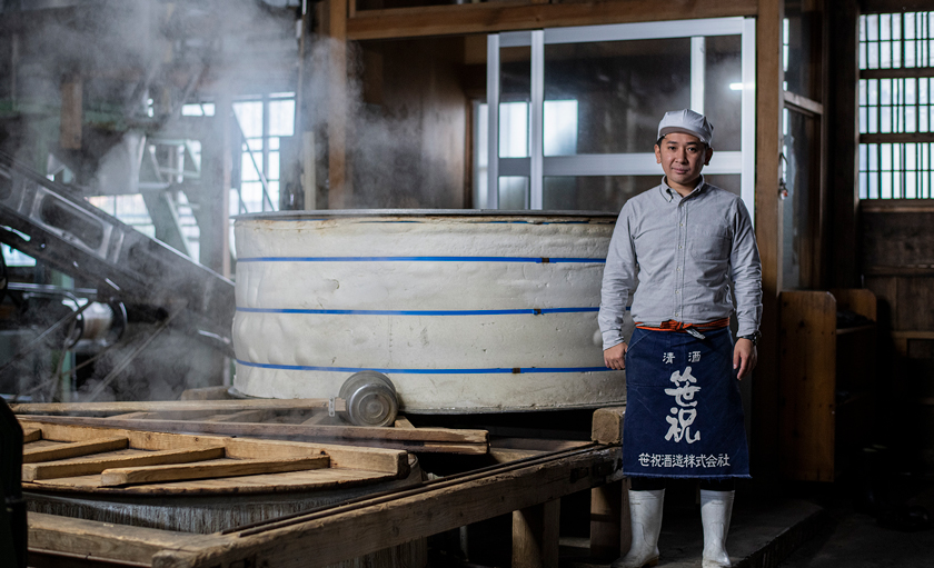 笹口さんは5年前に修業先である関東の酒販店から笹祝酒造に入り、2018年に6代目として社長に就任